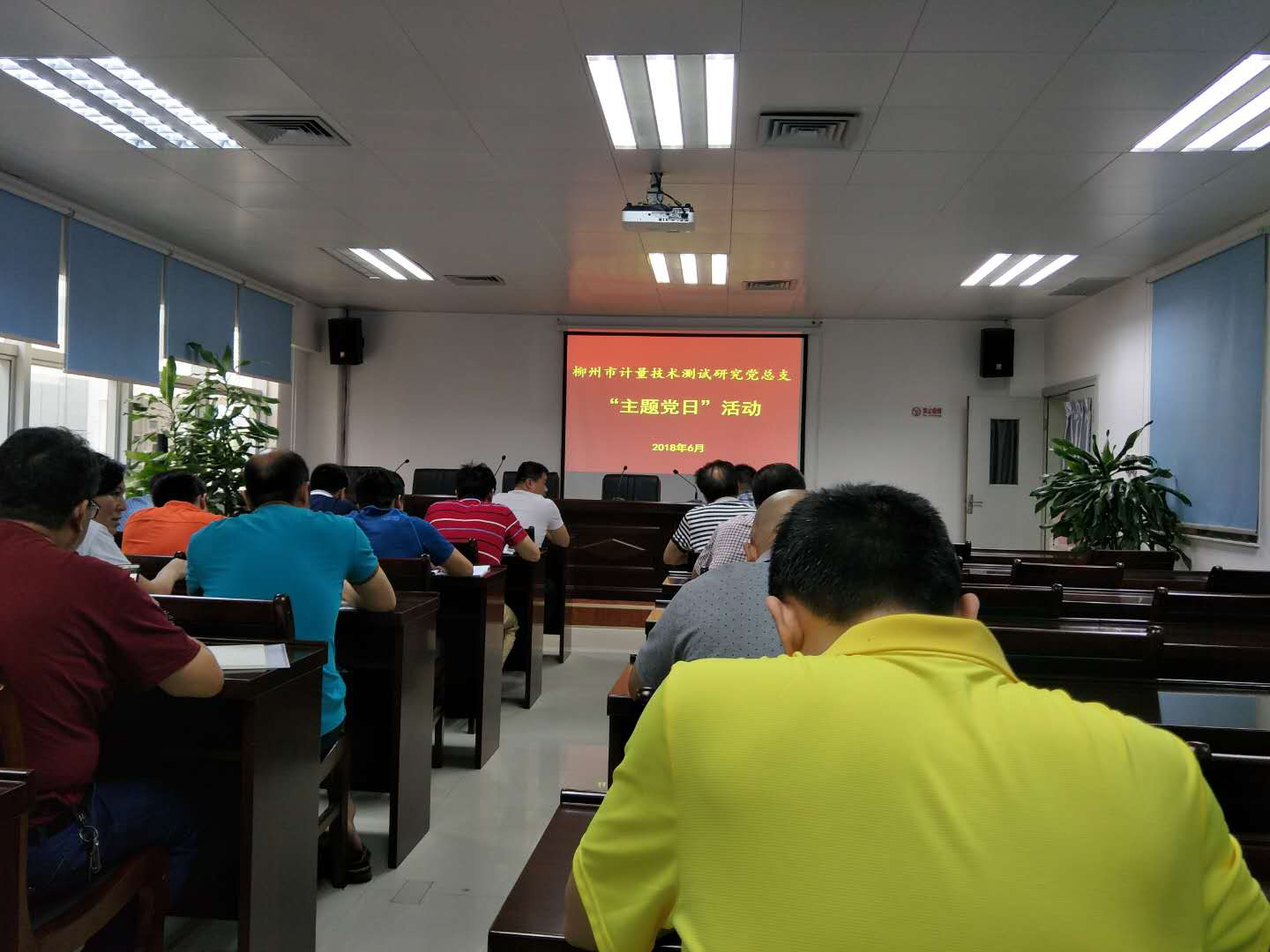 图为柳州市计量所党总支组织开展“强化干部新时代新担当新作为”大讨论“主题党日”活动