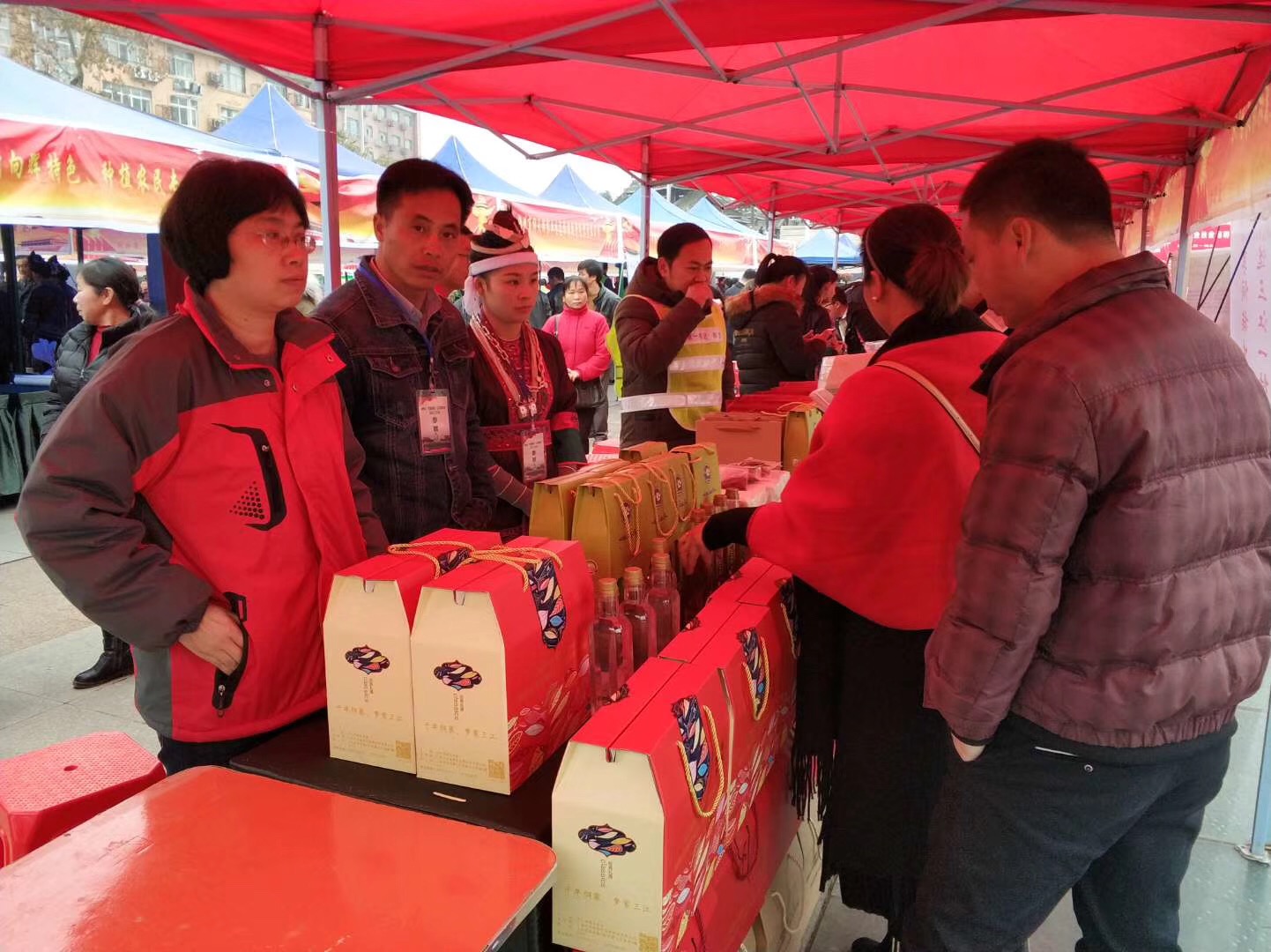 这是由柳州市委组织部、市两新党工委主办的“党旗领航·五送助脱贫”三江专场就业扶贫招聘会暨三江2019年迎春农产品电商展销活动。主办方为全县98个贫困村免费提供农产品展位49个,各贫困村在指定展位内展销农产品。柳州市质监局驻地保村第一书记组织了本村村民合作社、贫困户携带茶油、茶叶、米酒等特色农产品及宣传资料参加展销活动。活动为地保村油茶、茶叶等特色农产品起到了很好的宣传作用,为今后推动地保村特色产业的发展奠定了更坚实的基础,助力打赢该村脱贫攻坚翻身仗。