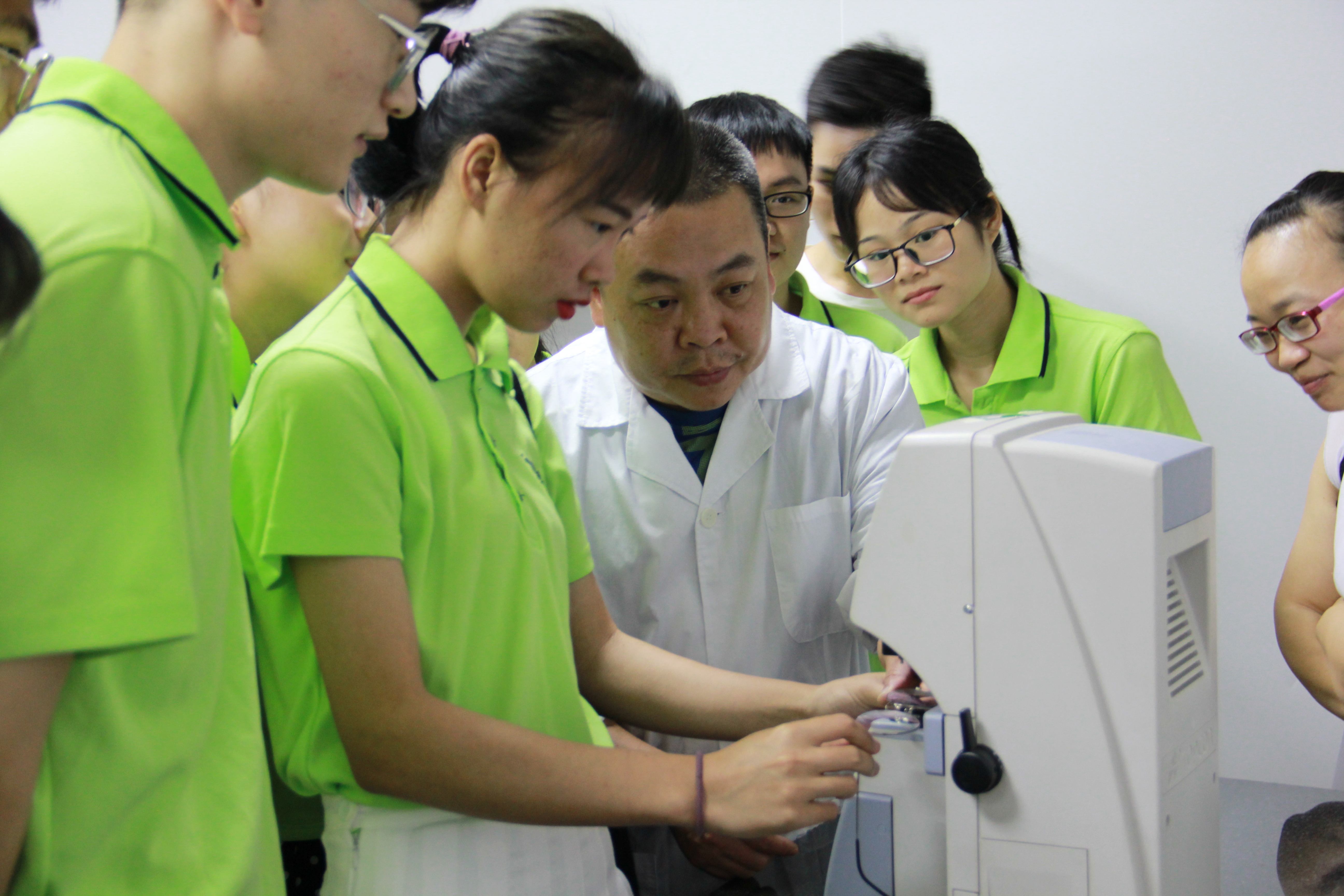 柳职院学生在专业人员指导下进行眼镜片检测实验