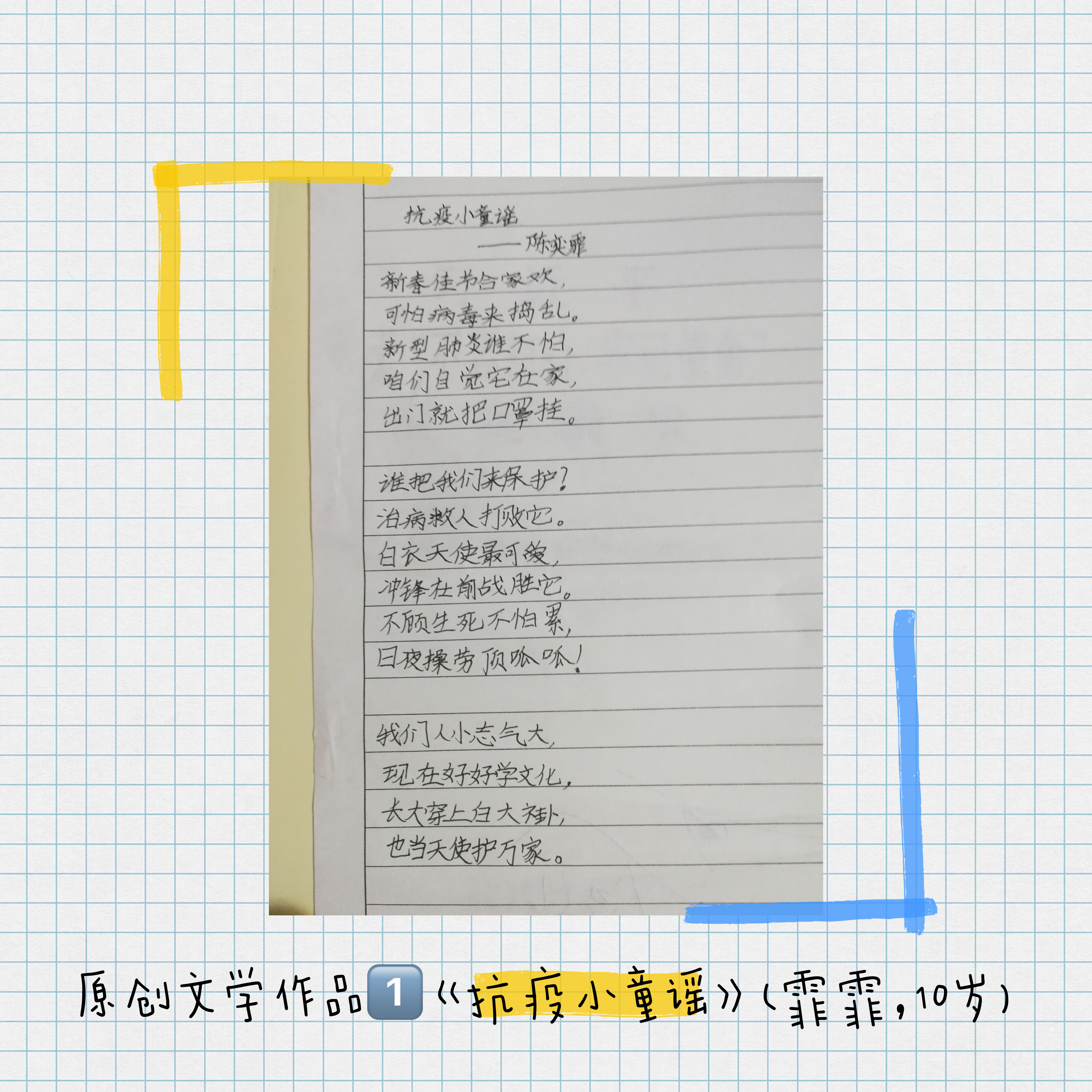 视频作品1 《抗疫小童谣》(霏霏,10岁)
