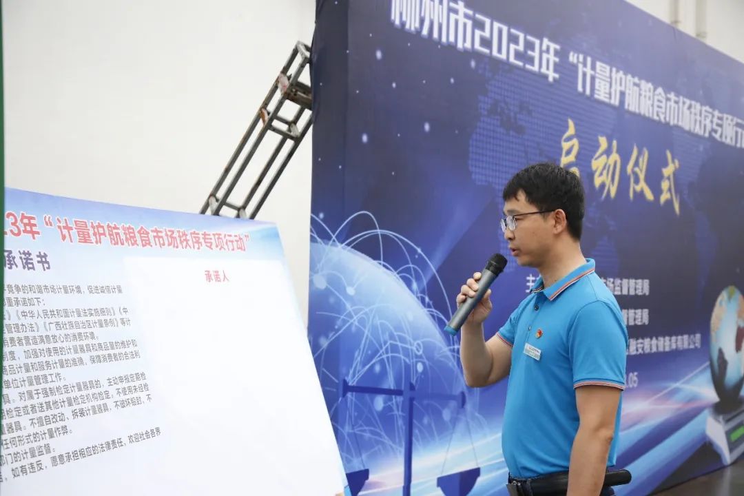 广西壮族自治区融安粮食储备库有限公司等20余家企业、经销单位代表现场作出诚信计量承诺并宣读倡议书,共同承诺做到遵纪守法、诚信经营,努力为营造公平竞争的和谐市场计量环境作出应有贡献。