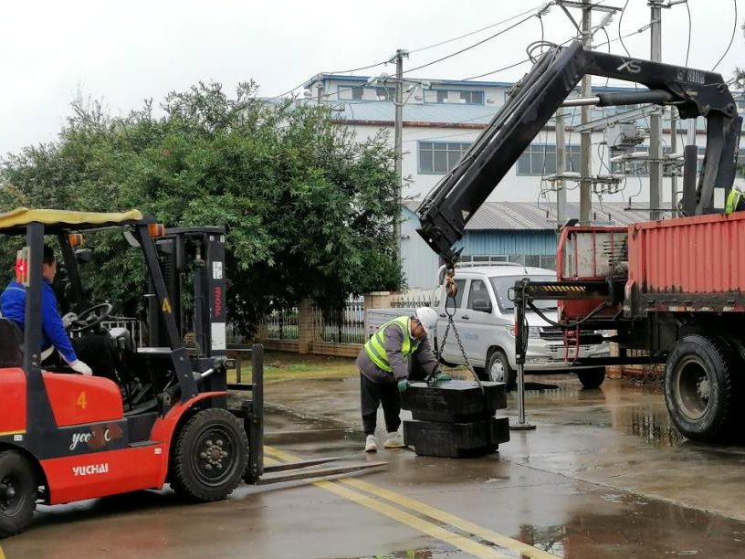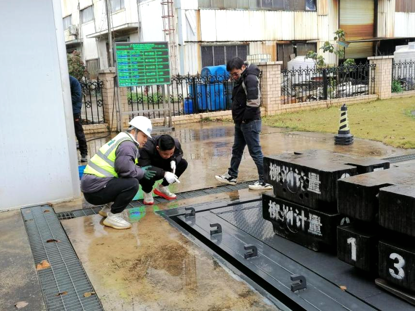 在校准现场,市计量所工作人员对汽车侧倾试验台进行全面检查,查看试验台承重台下部及周边是否有沙尘等堆积物,再使用标准砝码对试验台进行反复测试,记录并分析试验台的称量数据,判断试验台是否符合企业试验要求。对符合要求的试验台粘贴已校准标签,对出现量值不符合企业试验要求的试验台,现场配合企业一起进行校正、标定,直至符合企业试验要求,确保企业试验数据的准确性。