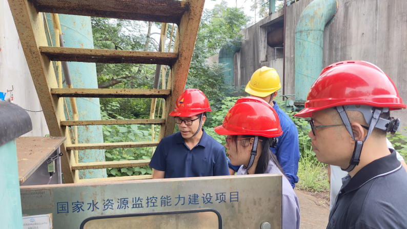 图为能源计量审查小组现场查验企业配备的水表。