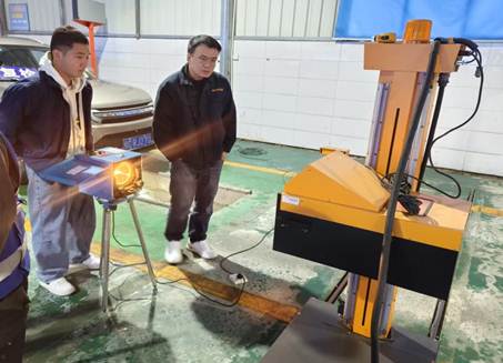 近日,三江县顺安机动车检测有限公司站内机动车前照灯检测仪出现光强示值异常问题,企业向柳州市计量技术测试研究所(以下简称“市计量所”)发出求助。市计量所迅速响应,第一时间组织由3名技术专家组成的专项小组,星夜兼程赶赴检测现场,为企业提供前照灯检测仪精准标定服务,切实解决中小企业面临的实际困难。